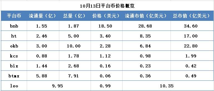 交易所周报 | 三大平台币BNB、HT、OKB表现强势,其中火币交易费率最高;Bakkt或将推出比特币期权(10.7-10.13)