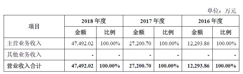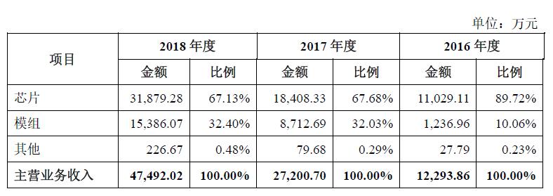 2016-2018年,乐鑫营收全部来自主营业务收入,年营收分别为1.2亿元、2.7亿元、4.7亿元,年均复合增长率达96.55%。