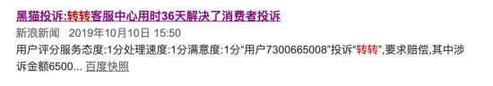 近日,新浪旗下黑猫投诉有多条投诉指向转转。