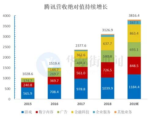 广告:广告无疑是受经济周期影响最大的业务板块,之前市场对腾讯广告业务的预期增速为35%+,但广告行业的整体性变化,让这一预期迅速降低到20%以下,2019年上半年的数据也证实了这一预期的变化;