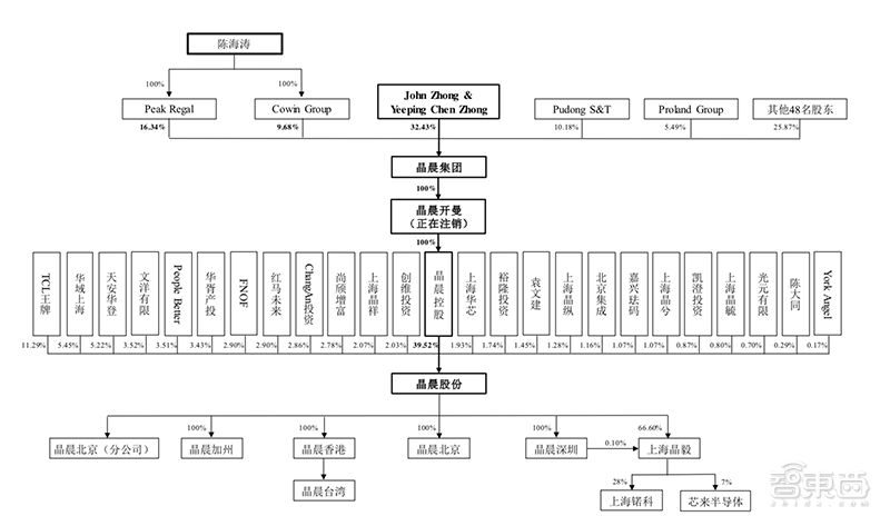 有意思的是,智东西发现晶晨股份的实际控制人是一对夫妻,均为佐治亚理工大学电子工程专业硕士。丈夫John Zhong中文名为钟培峰,持股28.02% ,妻子Yeeping Chen Zhong持股4.41%,同时后者的父亲陈海涛,通过Cowin Group和Peak Regal分别持股9.68%和16.34%。