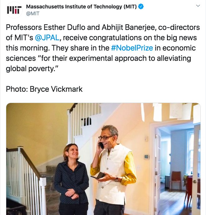 诺奖获得者埃斯特·迪弗洛和阿比吉特·班纳吉都任教于麻省理工学院