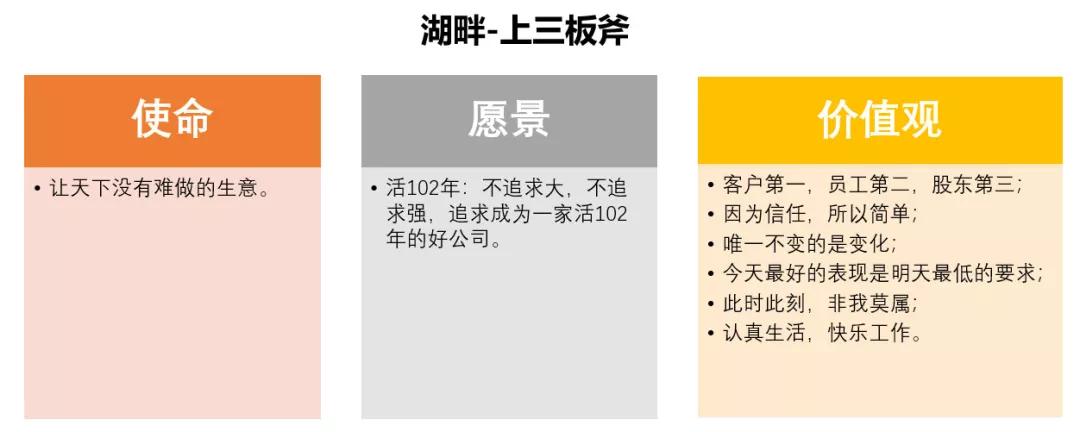 如下图所示,马云对阿里巴巴“终极目标”的表述,实际就是湖畔“上三板斧”中对“使命”的阐述。