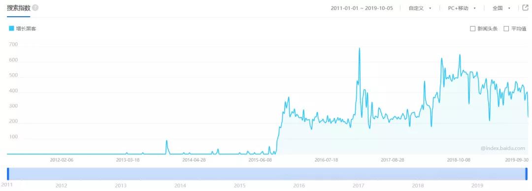 越是行情不好增长乏力的时候,大家就越容易把注意力放在增长上。比如,“增长黑客”理论早在2010年就已诞生,但只到2015年经济下行行业增长疲软时才为业界所重视。