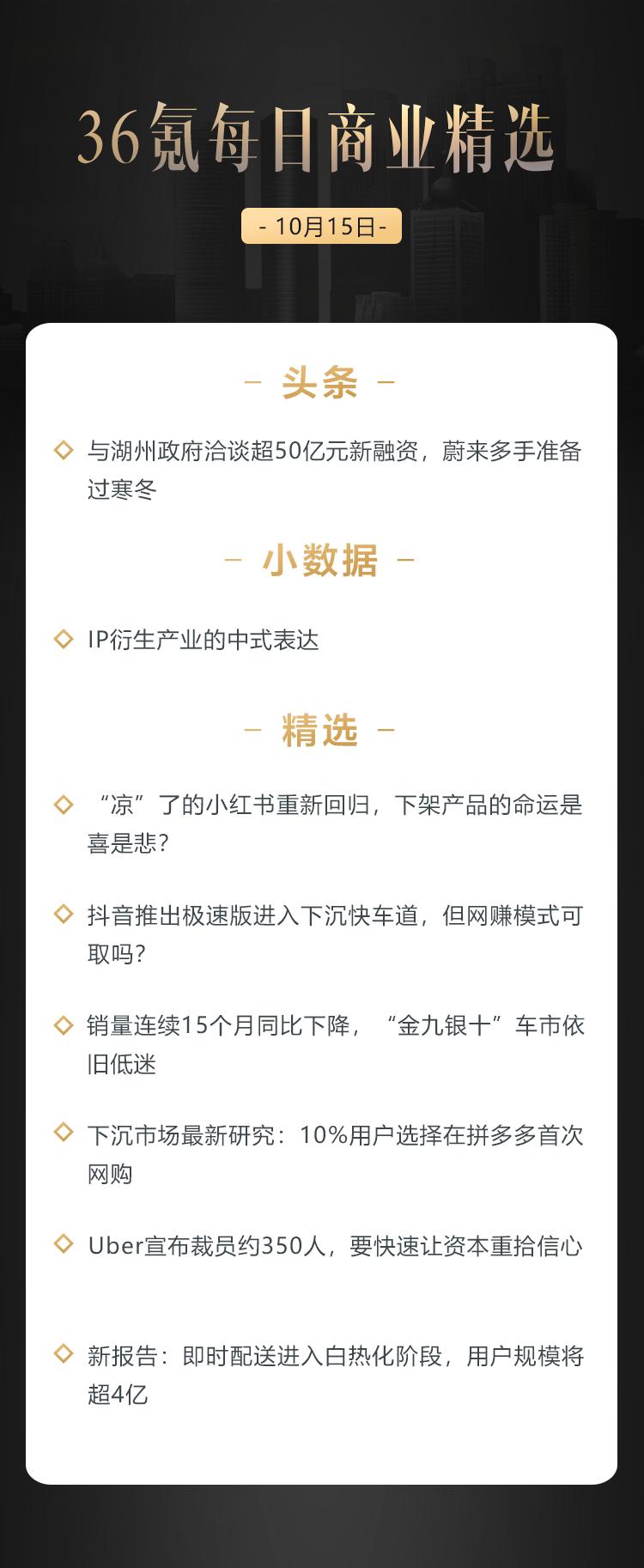 本文来自36氪付费栏目《36氪每日商业精选》——10月16日