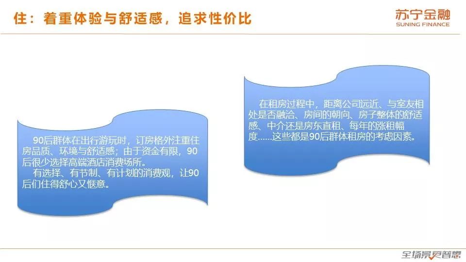 (2)90后人群消费画像:系统刻画90后在“衣食住行游购娱”各个方面所表现出来的消费特征与偏好;