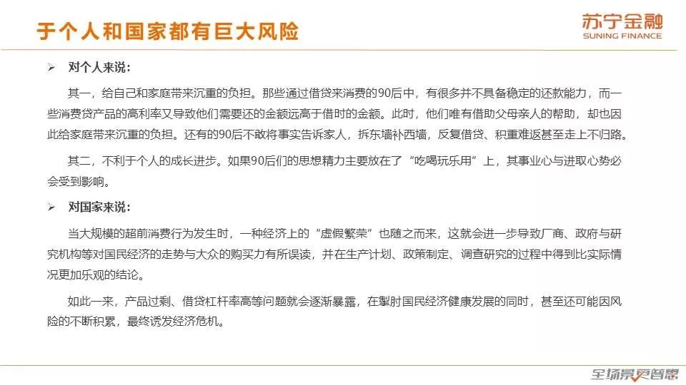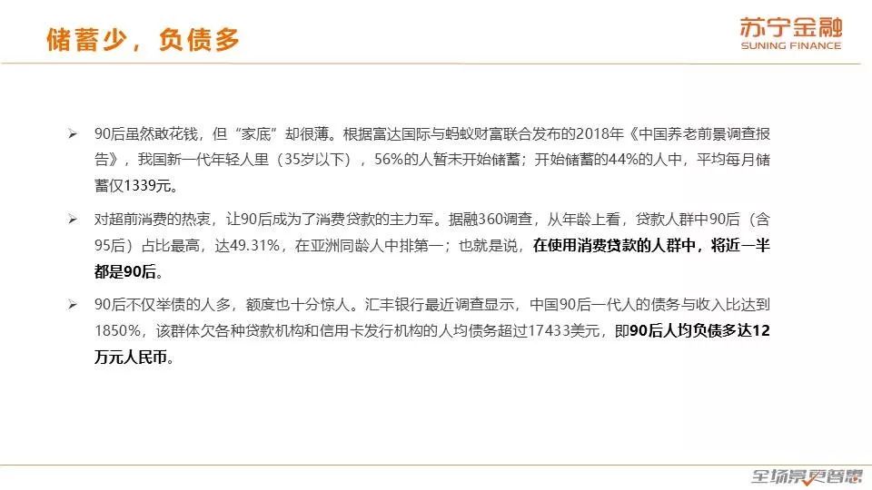 (4)光鲜背后的隐忧:表面上看,90后的消费比较光鲜,但背后却有着不容忽视的风险点。
