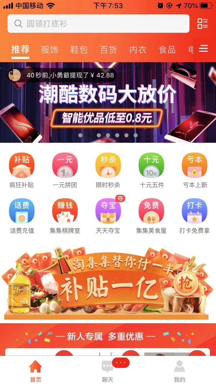 淘集集APP于2018年8月正式上线,通过邀请商家入驻,在线上销售日用百货、美妆个护、服饰鞋包、家居家纺、食品水果等产品。在拼多多用9块9包邮完成对下沉市场的包围后,这个主打比拼多多更下沉市场的社交电商平台,更是一度把大衣的价格降到了8块8。