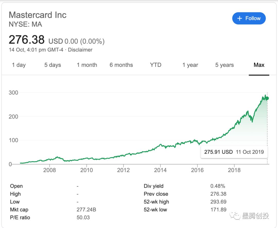 也就难怪 MasterCard 的股价一直涨涨涨: