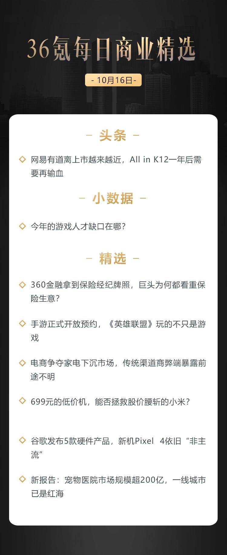 本文来自36氪付费栏目《36氪每日商业精选》——10月16日