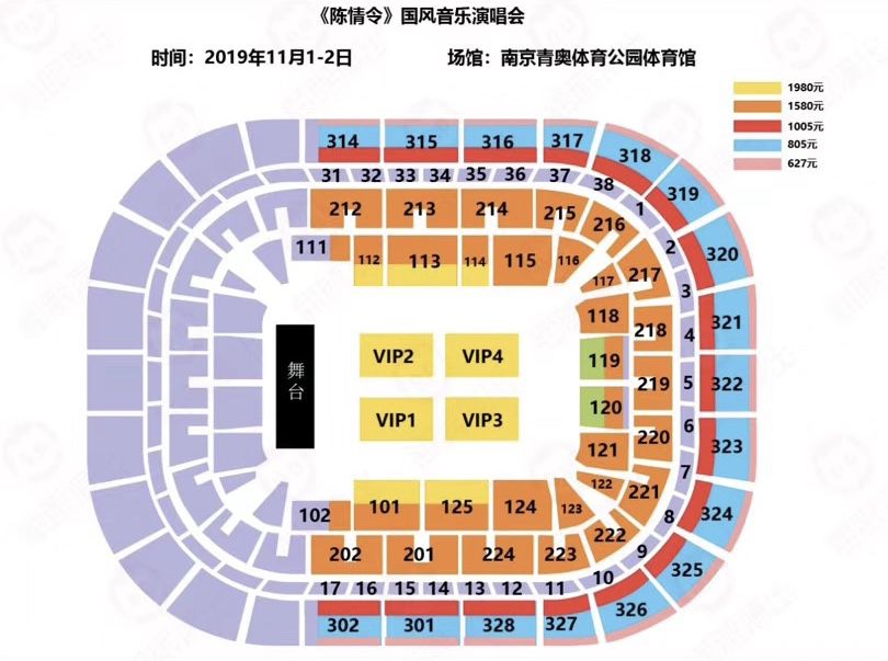 此次演唱会官方票价分为5档,分别为:627元、805元、1005元、1580元、1980元。