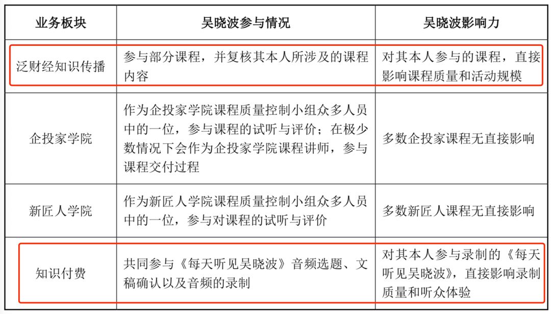 吴晓波对各业务板块影响力