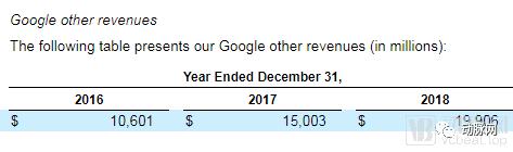 近3年来包含了Google Cloud业务的“其他收入”情况,来源:Alphabet 2018年年报
