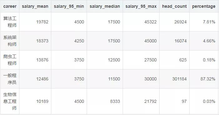 同样是“做IT”,维护人员可能3千多,程序员可能1万多。同样是程序员,写初级脚本的平均月薪5千,写算法的平均月薪2万。
