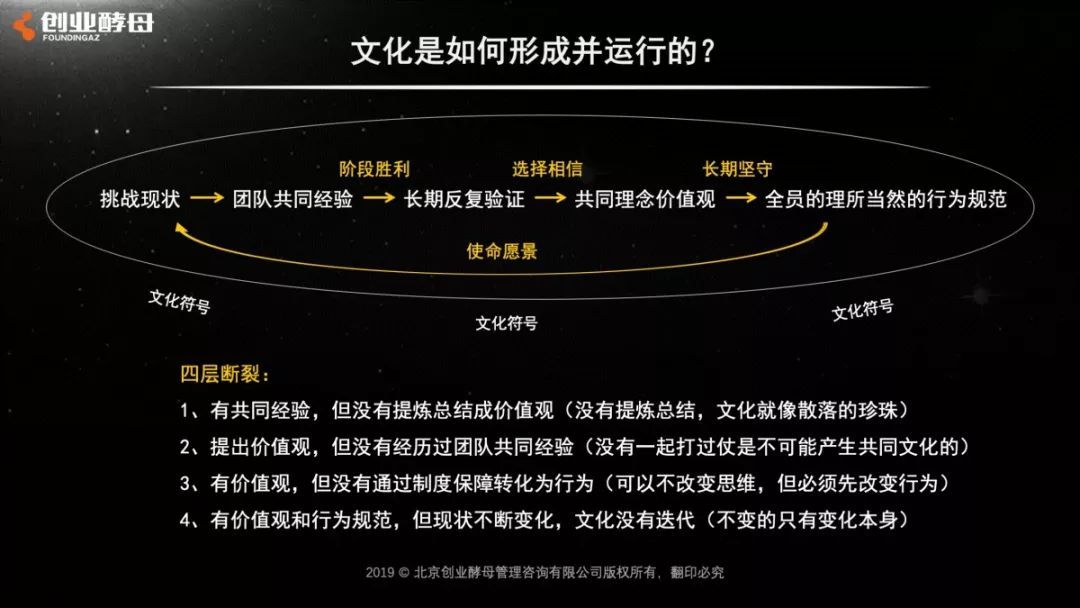 在这四层断裂中,酵母团队被问及最多的就是企业在不同阶段需要的文化是什么?