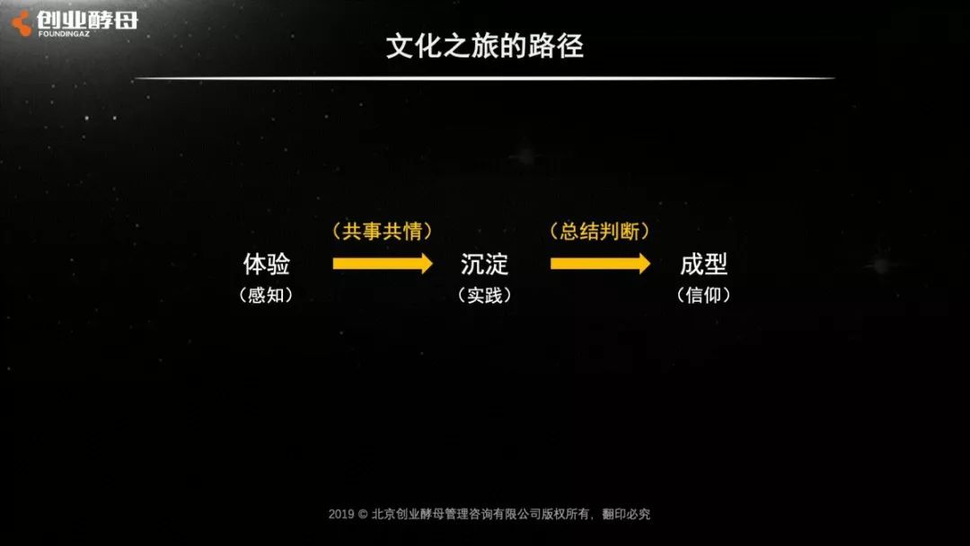初创企业做不了文化,因为星星之火可以燎原,这时候更重要的是筛选出来愿意一起生存下去的员工,他们作为星星之火的种子,才能有机会在未来去孕育文化。
