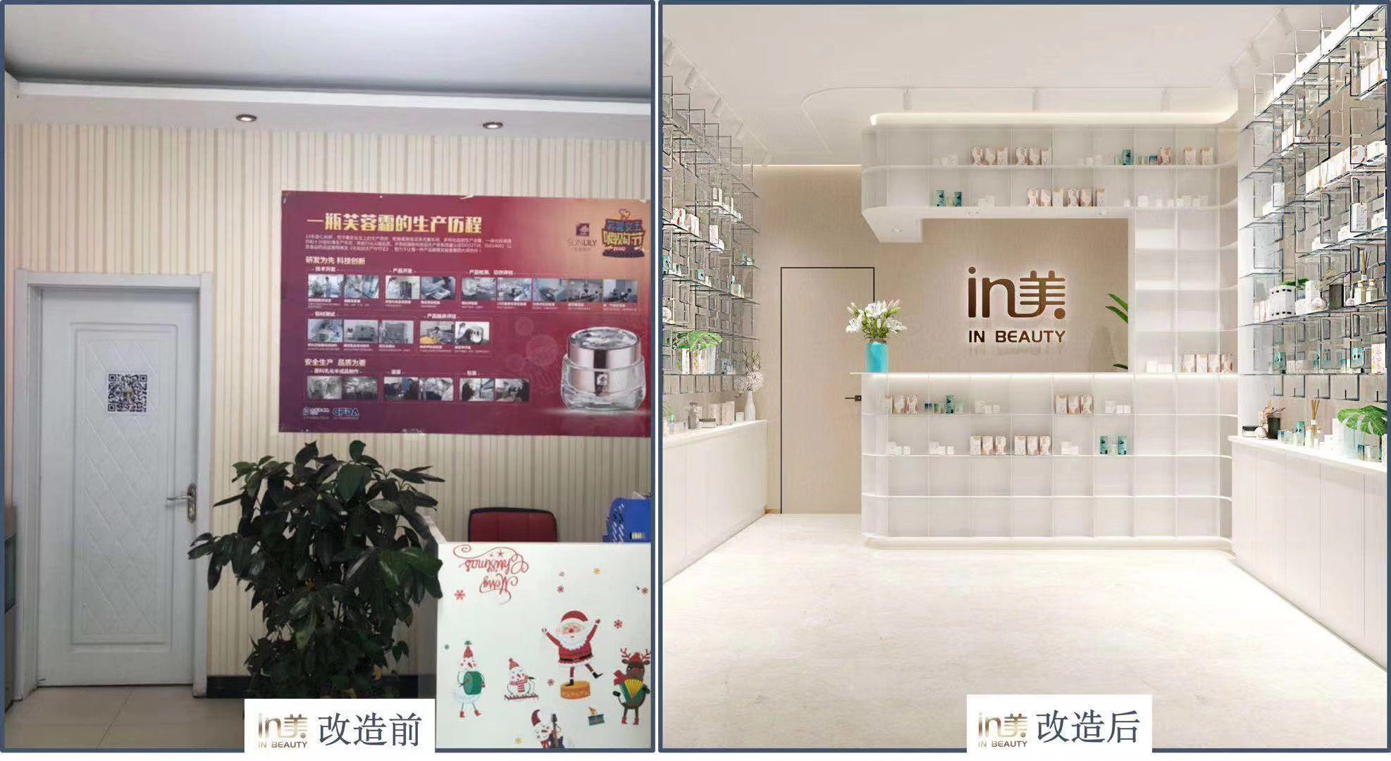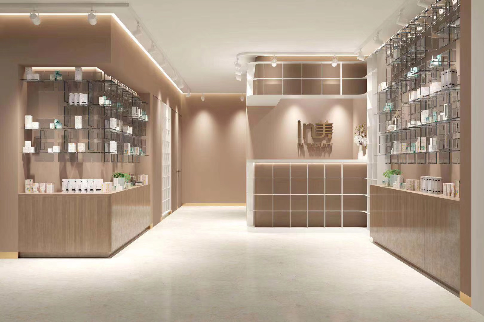 In Beauty根据原来美容院的环境情况做改造,最终可分为三类门店:一类是旗舰店,需要重新装修;第二类是心选店,重点对前庭和门头做修整;第三类是体验店,只需统一门头即可。