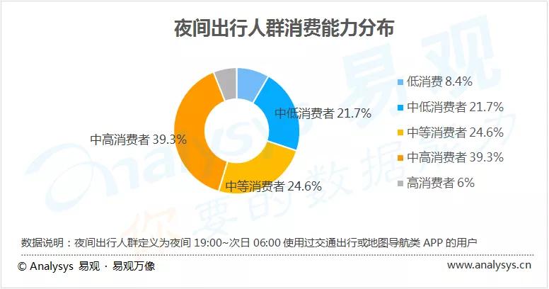 一、二线城市分别以23.0%、22.0%的夜间出行人群占比占据领先地位;下沉市场(即非县级城市及其他)以21.8%的占比逼近,但受限于经济能力、商业生态、基础设施服务及治安水平,夜间出行需求尚未完全释放,是未来的主要增长点。