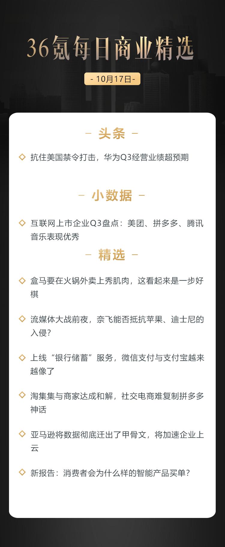 本文来自36氪付费栏目《36氪每日商业精选》——10月17日