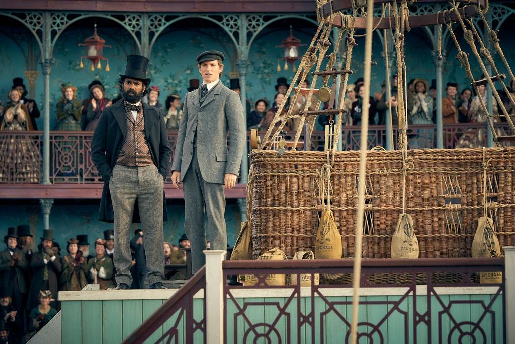 图1:电影《热气球飞行家》剧照,演员Himesh Patel(左)和Eddie Redmayne(右)。亚马逊工作室缩减了这部电影的上映时间。图片来源:亚马逊工作室