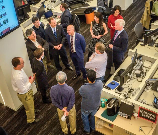 2016年,贝索斯访问《华盛顿邮报》新闻编辑室。