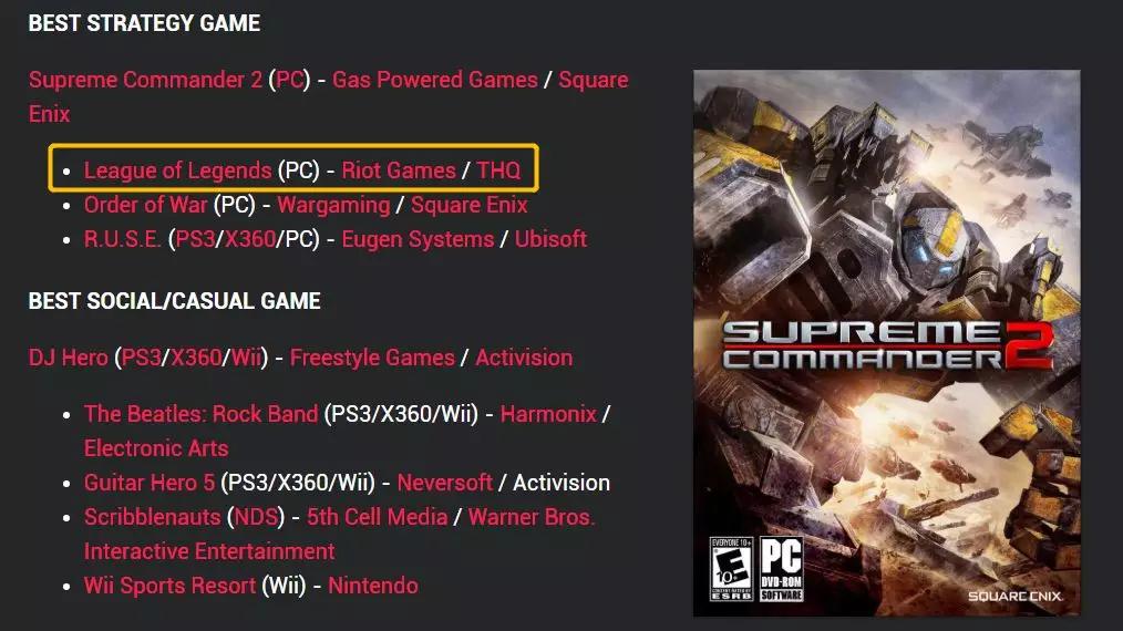 为期3天的E3展会结束了,《英雄联盟》拿到了E3游戏展最佳策略型游戏的提名,但奖项最终被SE公司开发的PC游戏《最高指挥官2》夺得。
