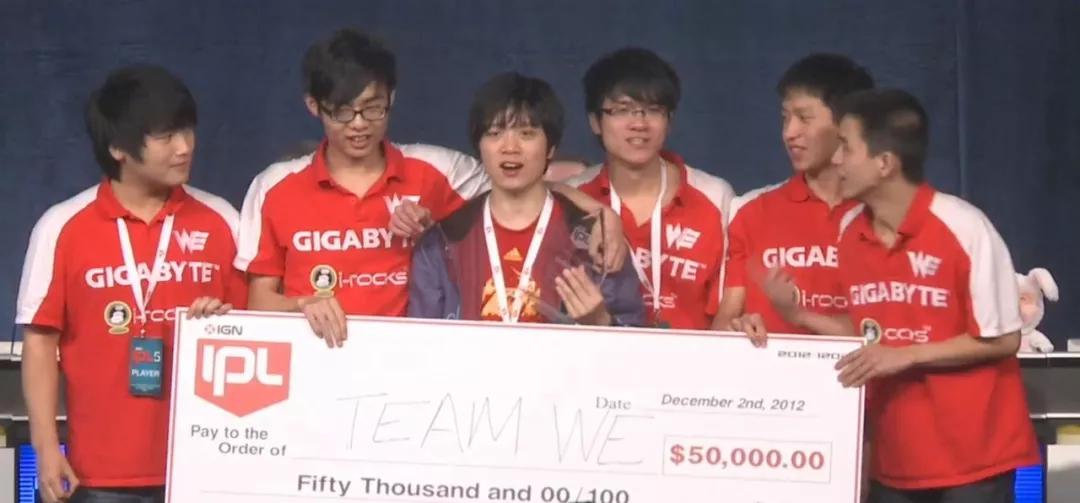 2012年12月3日,在美国游戏媒体IGN举办的全球电竞职业联赛IPL5上,WE战队打败了S1冠军FNC战队,拿到了中国在《英雄联盟》项目上的首个世界冠军。若风、微笑、草莓、诺言、卷毛,五个年轻人成为了第一批被广为人知的《英雄联盟》电竞选手。