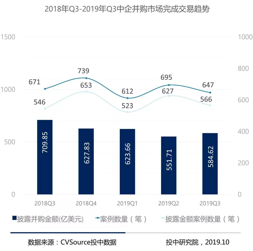 图3-2018年Q3-2019年Q3中企并购市场完成交易趋势