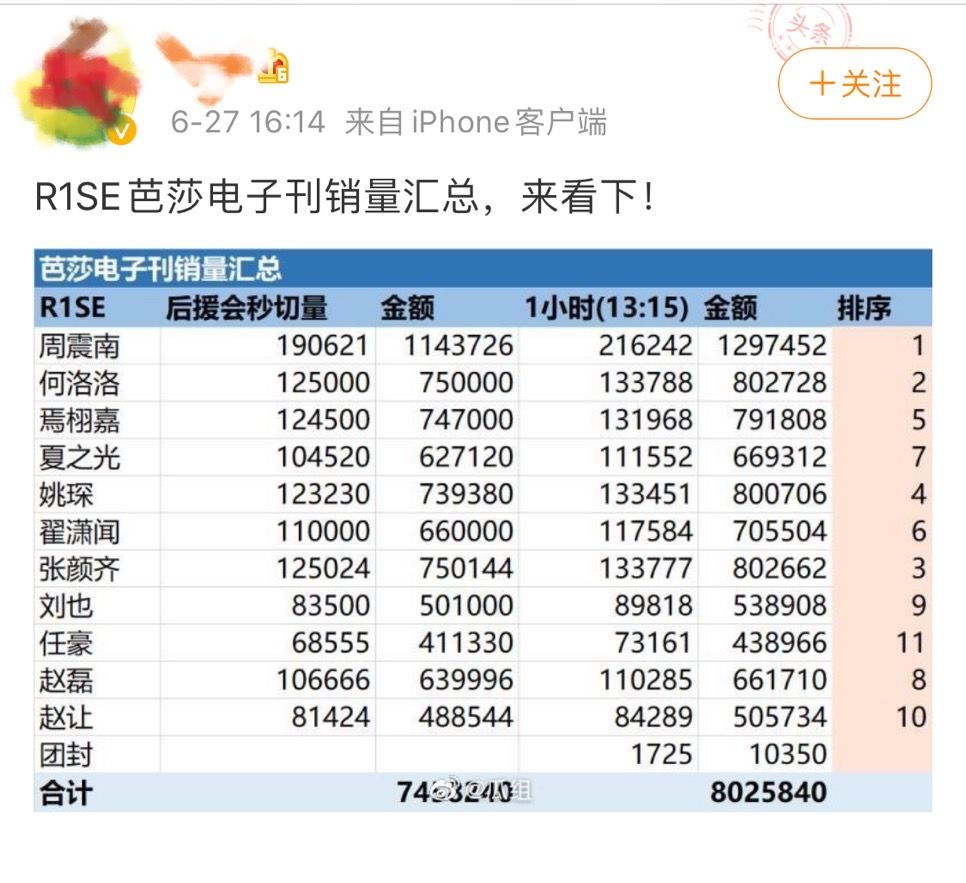 在整个过程中,舆论也相当配合地在做实时的数据battle,更绝的是会有舆论将他们的出道排名与电子刊排名做对比,试图证实粉丝的氪金能力是否依然和比赛时一样“鸡血”。