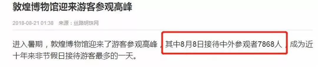 河西走廊的最西端,地处甘肃、青海、新疆三处交汇处,去一趟敦煌可比去一趟北京的难度要大多了。公开资料显示,2018年敦煌博物馆迎来非节假日参观人数最高峰,单日参观人数逼近8000。而故宫博物院在2018年的年参观人数则为1700万人次,平均到单日差不多一天要接待6万人。