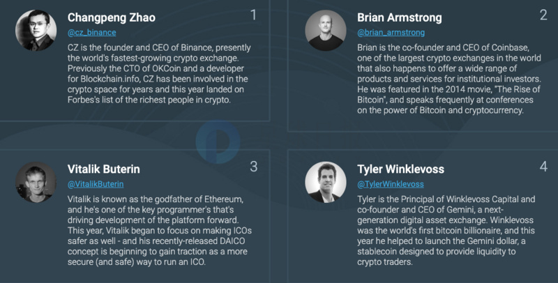 1.外媒梳理加密影响力Top 100:赵长鹏、Coinbase CEO、V神位列前三
