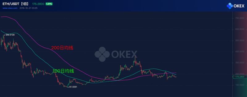 二级市场方面,目前 ETH 价格受到两大阻力:一个是 100 日均线,目前暂报 194 美元;另外一个是 200 日均线,暂报 212 美元。
