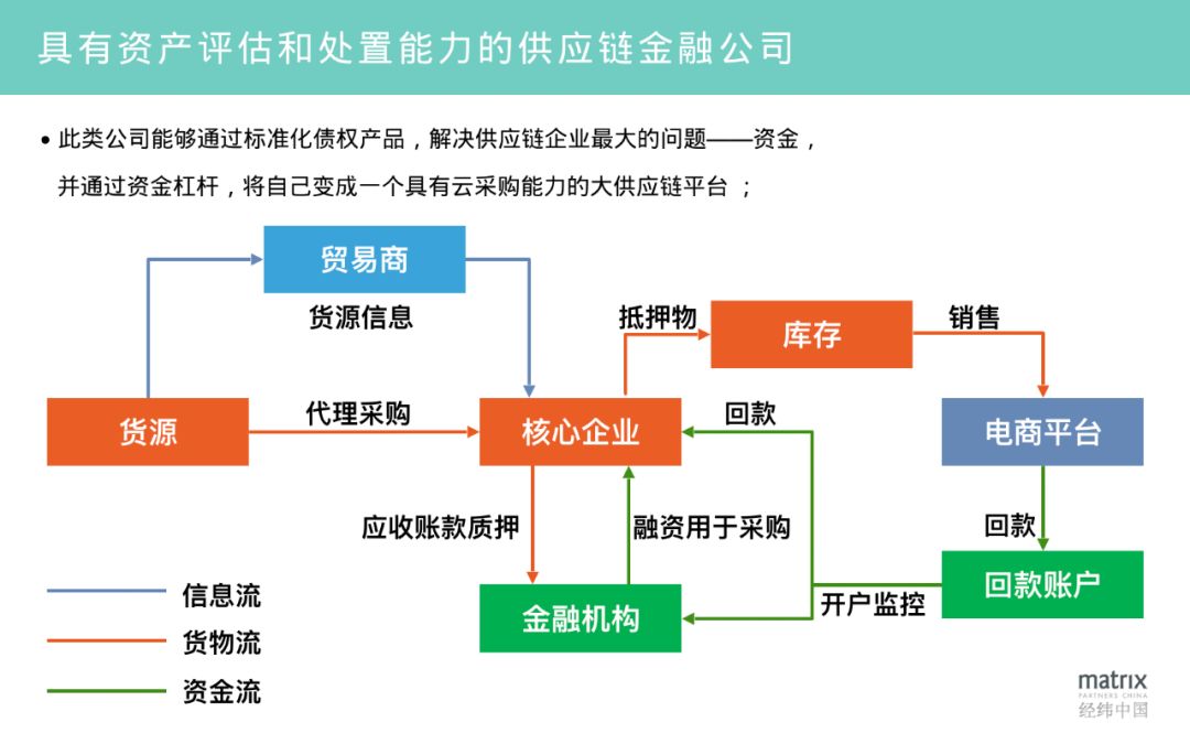 ● 以资金作为切入点,进而 提高整个链条周转效率 的供应链平台企业;