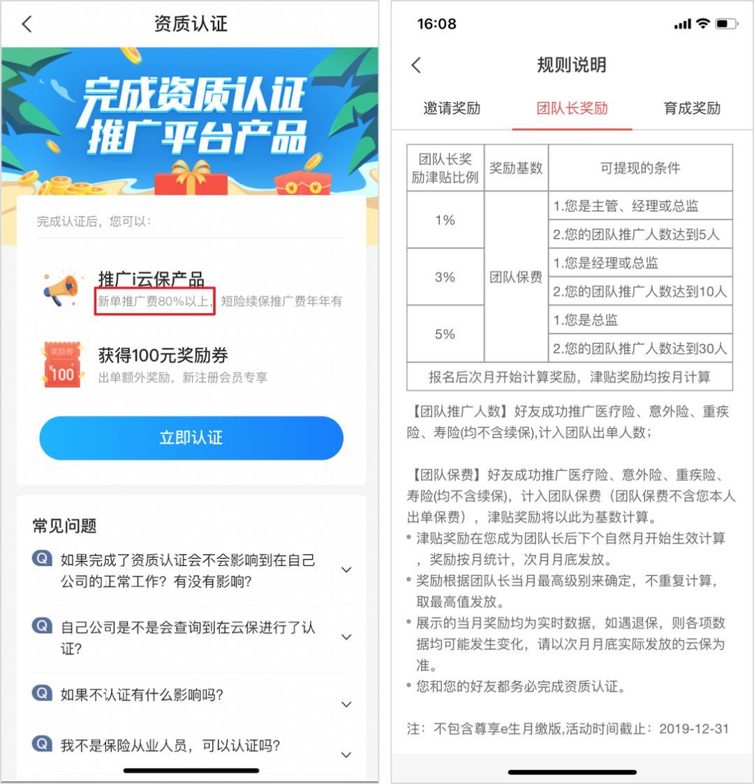 以 i云保为例,平台上有各类保险产品,用户推广其中的任一款产品都可以获得提成,第一单的提成甚至高达 80%。