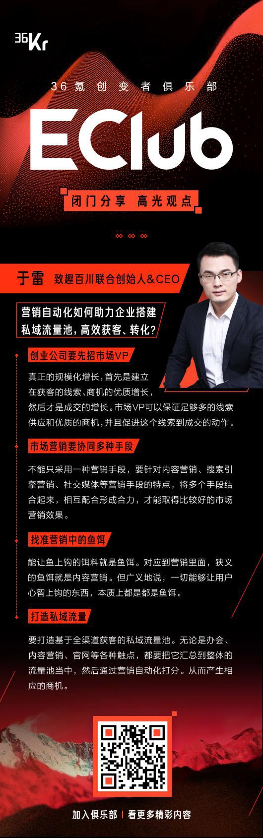 致趣百川于雷:营销自动化如何助力企业搭建私域流量池,高效获客、转化?| E-Club创变者俱乐部专属分享
