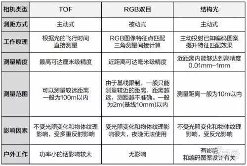 ▲三种三维视觉技术的主要差异对比(图片来自网络)