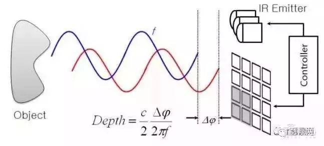 更进一步来看,TOF三维视觉技术主要包括光脉冲法和连续波法。前者是通过计算光脉冲的两段时间差来计算距离,后者是利用调制的连续波产生的相位差来获知距离差。