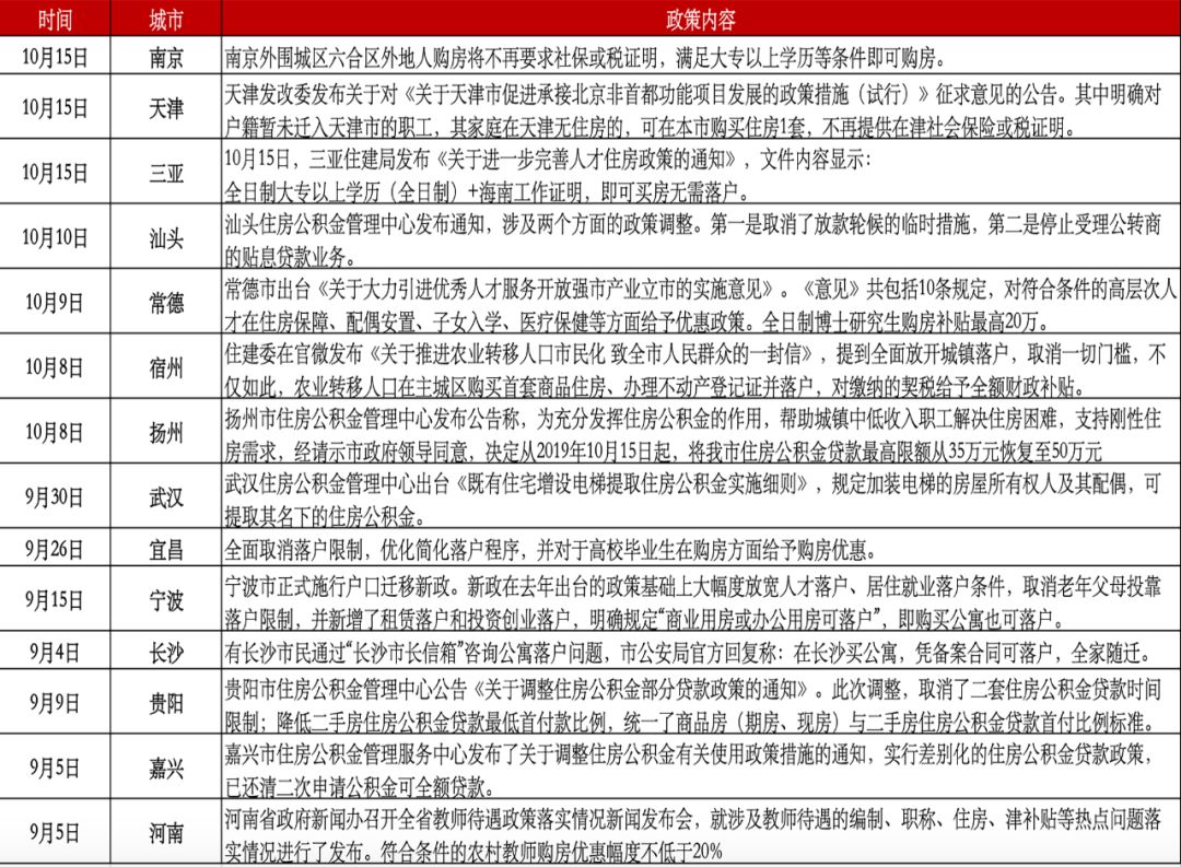 首先是10月15日,南京、天津、三亚三地在同日放出放松限购的消息。