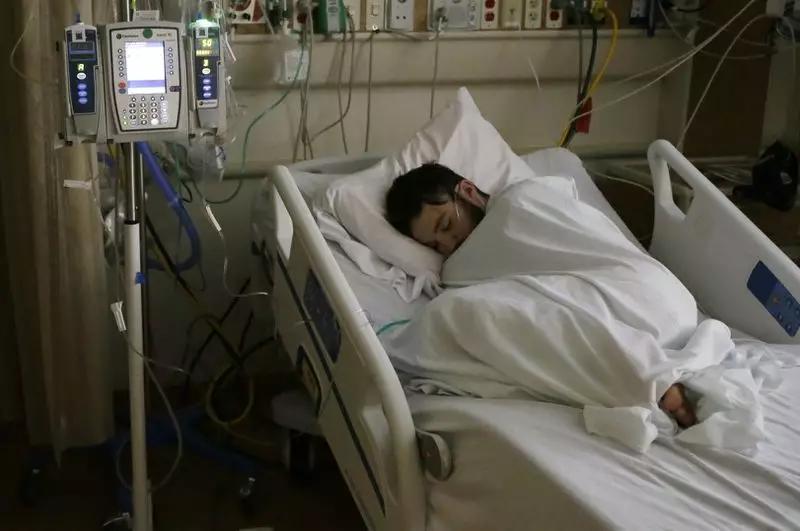 Adam Hergenreder躺在病床上。/Chicago Tribune