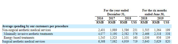 招股书解释,降低价格是作为营销策略的一部分。公司通过提供少量低价疗程来吸引潜在客户来试用;并且为了提高设备的利用率,公司不时提供促销活动以吸引新客户。