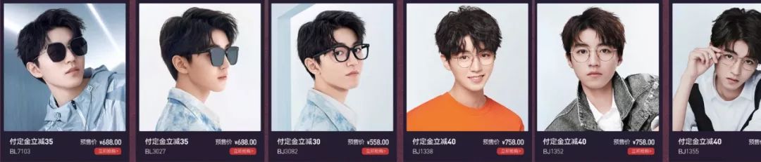 第二是不要一次性为明星代言人绑定太多款产品,容易分散流量。比如王俊凯代言的暴龙眼镜,产品页面就看得娱sir头晕目眩,进去之后N款产品傻傻分不清楚,粉丝也不知道要买哪一款才合适。
