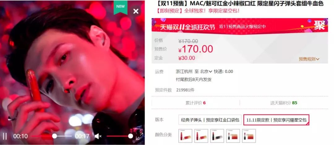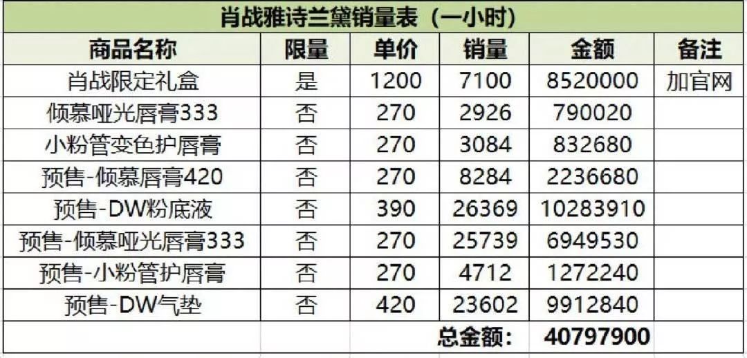 比如张艺兴代言的MAC推出了红金小辣椒限定星闪口红,预售约3737万元,本身就非常流行。而肖战代言的雅诗兰黛彩妆系列,也得到了李佳琦的多次推荐,很难说爆表的销量算谁的,大家都有贡献。