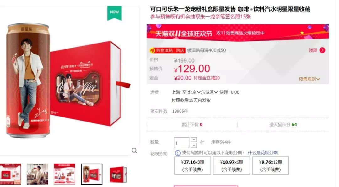 通过这次双11预售,相信不少品牌也吸取了经验教训。第一是明星周边一定要送,最好能够特别一些,而非简单的日历、人形牌与贴纸,因为家家都送(什么周边都不送的品牌可以跪安了);相比之下悦木之源赠送王一博Q版盲盒,或者可口可乐为朱一龙推出的宠粉礼盒,内含拥有朱一龙形象的可口可乐咖啡+,算是粉丝比较满意的小礼物。