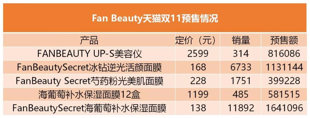 不止直播,Fan Beauty面膜和美容仪在天猫双11官网预售中,销售额也很快达到了500万。今天下午范冰冰发了一条微博,“芍药,我最喜欢的!”吃瓜路人不要以为她真去种花种草了,事实是晚上9点,雪梨要在直播间卖这款芍药面膜,嗯。