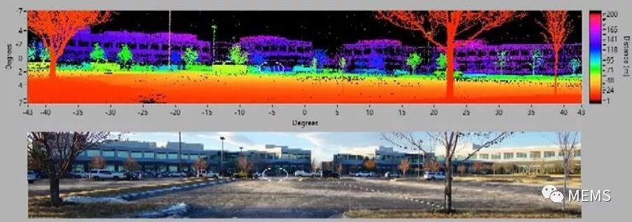 基于光子芯片的高速波长扫描激光技术企业Insight LiDAR公司,在2019年消费电子展(CES)上正式推出了Digital Coherent LiDAR激光雷达(上图为该激光雷达全速扫描获得的原始成像)。这款激光雷达基于灵敏度更高的FMCW探测技术,对于低反射率(反射率<10%)物体,探测距离最高可达200米;对于汽车车身、树木或其它障碍物,最大探测距离可达250米。