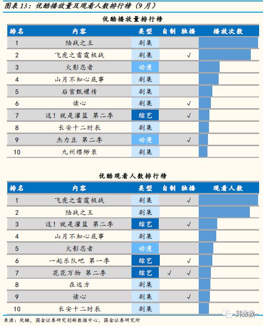 受暑期结束及国庆节目排期影响,综艺类节目表现普遍下滑。受暑期结束及国庆节目排期影响,综艺类节目表现不佳,剧集类播放量也有所下滑,预计Q4,在多款待播热门内容上线后,情况将有所改善。