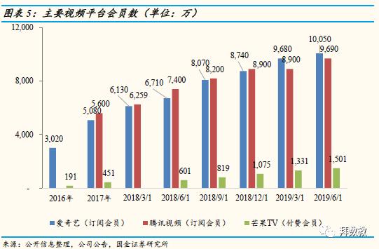 各视频网站会员数持续增长。2019Q2,腾讯视频订阅会员达到9690万,芒果TV的付费会员也突破了1331万,6月22日,爱奇艺会员数量突破1亿,自此,中国在线视频行业正式进入亿级会员时代。我们预计会员数持续增长仍然是未来2年的主基调,但未来主要方向为提升低线城市渗透率,以及延长已付费用户付费周期。此外,“联合会员”也成为提升付费会员渗透率的有效手段。
