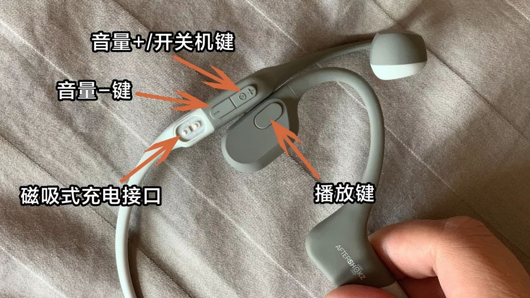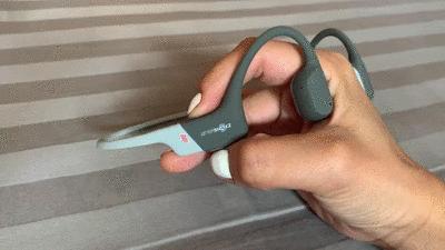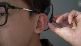 韶音Aeropex的佩戴十分简单,拿起来往耳朵上一挂就行,不用特地对准,也不用像传统耳机一样要塞到耳朵眼里面。