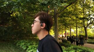 因为是独特的骨传导耳机,靠振动颞骨来让耳蜗听到音乐,因此韶音Aeropex的玩法可要比传统耳机多多了。正常佩戴出街,感觉音乐和环境音融为一体,就像是街边有个移动音响一直跟着你播放似的,有种自带BGM的潇洒错觉。