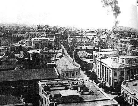 那时候没有高楼大厦,站在天井上能看到河对岸一颗颗炮弹丢下去,火光冲天,黑烟升起,家里所有房子都被夷为平地。